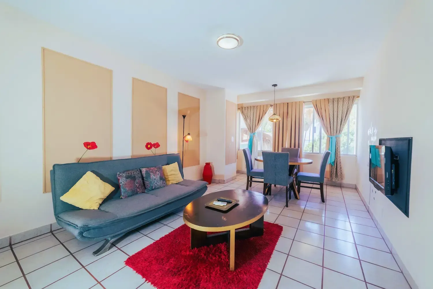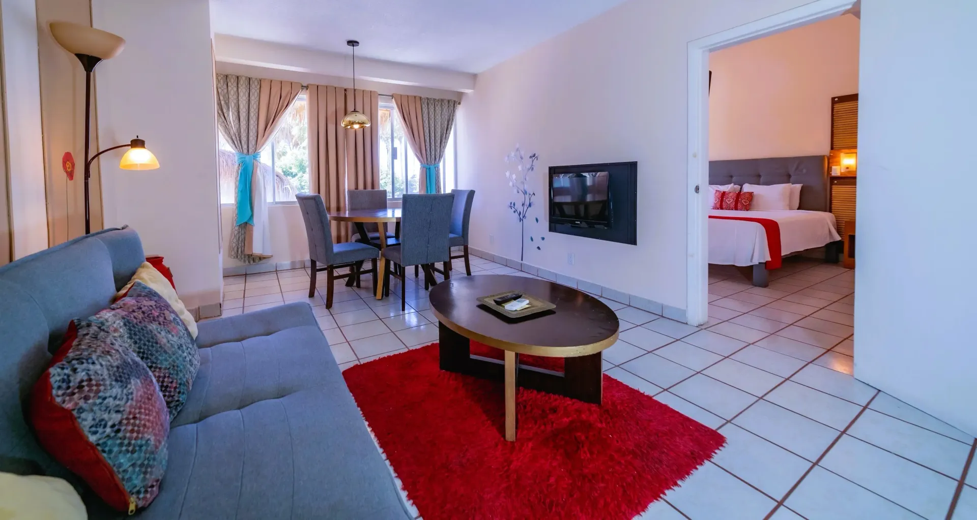 Nuestro cómodo y espacioso Estudio Superior Doble hasta para 4 adultos y 2 menores hasta de 11 años, cuenta con dos camas matrimoniales y un pequeño sofá cama con una selección de espacios y servicios. Entre sus espacios se incluye sala con sofá cama, comedor y una cocina totalmente equipada. Cuenta con aire acondicionado, televisión por cable y 2 baños completos. Sus dos balcones son el lugar perfecto para disfrutar de la mejor vista al mar.