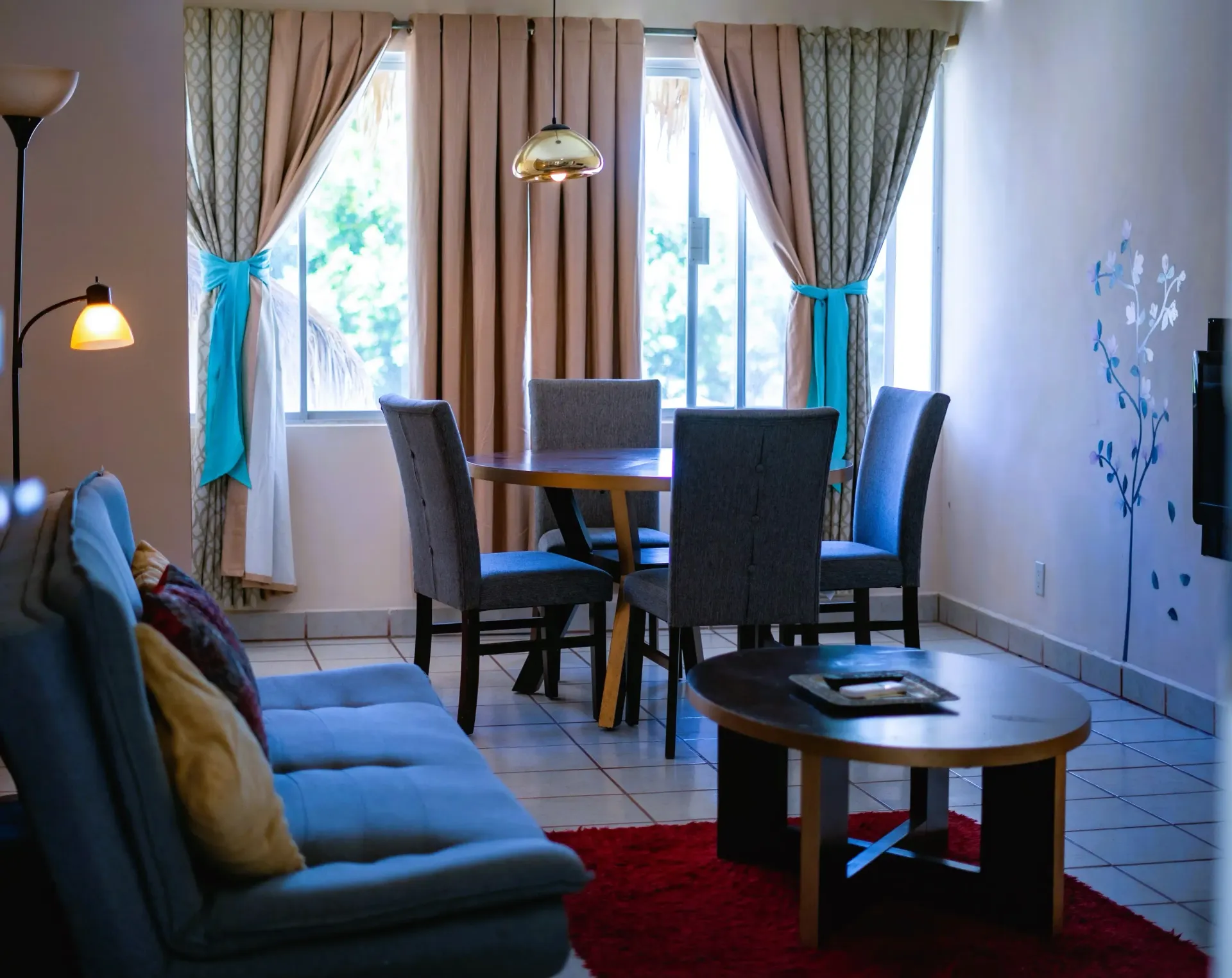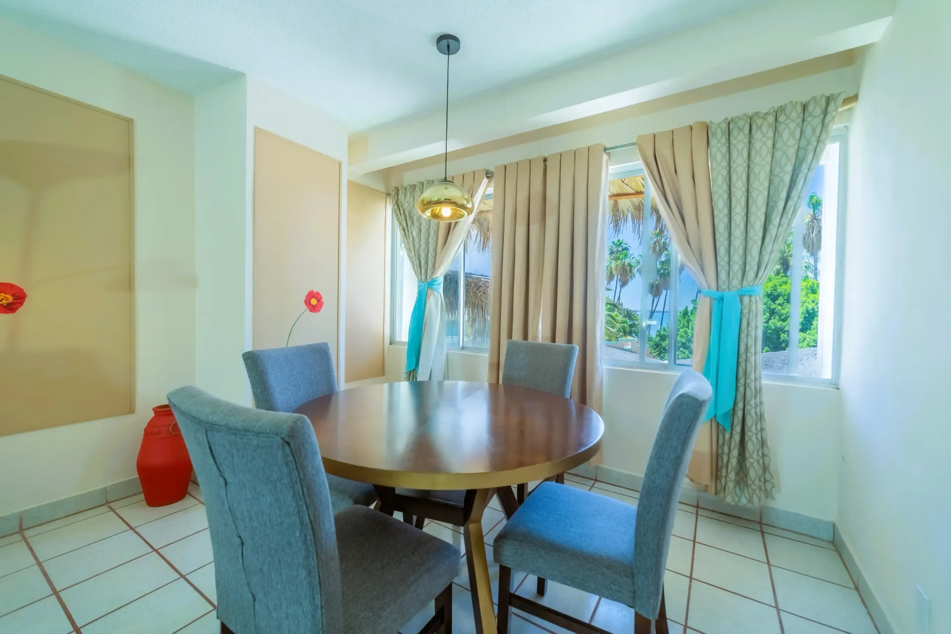 Pent-house equipado, consta de dos habitaciones independientes, una con cama matrimonial y la segunda con dos camas matrimoniales, aire acondicionado, televisión por cable, sala, comedor y cocina totalmente equipada para su uso. Además, cuenta con 3 baños completos y 3 balcones con vista al relajante mar de Cortés y con una capacidad hasta 6 adultos y 1 menor.